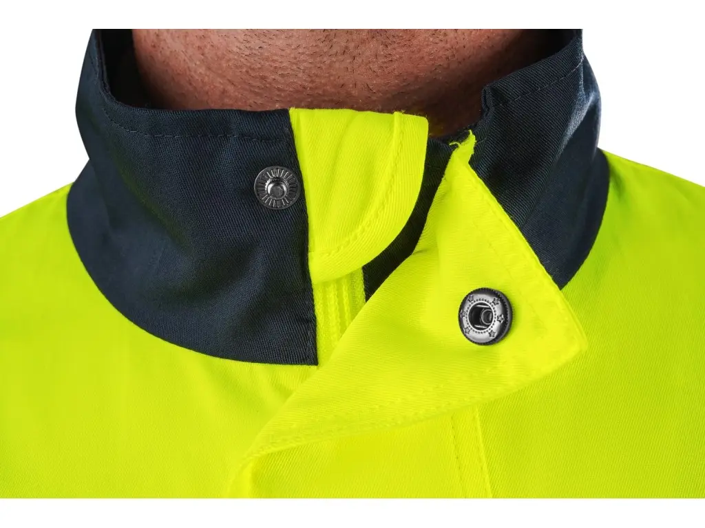 Pánska výstražná blúza CXS HALIFAX je určená na prácu v letnom období. Je vybavená segmentovanými reflexnými pásikmi so šírkou 5 cm, ktoré zaisťujú vysokú viditeľnosť a zároveň zachovávajú pružnosť materiálu. Blúza má zapínanie na zips kryté légou s kovovými cvokmi. Je vybavená náprsními vreckami s chlopňou na suchý zips a skrytými vreckami s uzáverom na zips a bočnými vreckami na zips. Manžety rukávov aj spodný lem sa dajú jednoducho utiahnuť pomocou suchého zipsu. V podpazuší a na chrbte je použitý sieťovaný materiál pre lepšiu mikrocirkuláciu vzduchu a odvod tepla. V kombinácii s nohavicami alebo nohavicami na traky spĺňa blúza CXS HALIFAX ochrannú kategóriu 3 podľa EN ISO 20471. Odporúčané použitie: letné pracovné oblečenie, stavebníctvo, cestárske práce, logistika, údržba, vodiči, letecká a lodná doprava, záchranári a technické služby.