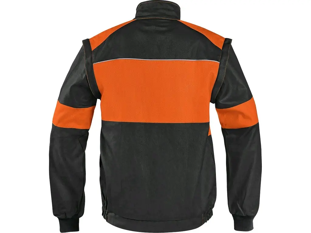 Pánská montérková blůza, odepínací rukávy s pružnou manžetou, kryté zapínání na zip a suché zipy, náprsní kapsy s klopami, skrytá náprsní kapsa na zip, jednoduché boční kapsy, spodní část na bocích do gumy, reflexní doplňky. Doporučené použití: stavebnictví, lehký průmysl, logistika, skladová manipulace, autoservisy, údržba, montáže, zemědělství, zahrada, hobby