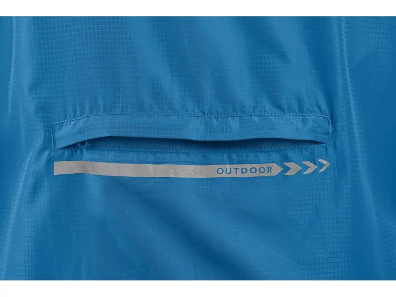 Pánska ultraľahká bunda s kapucňou a reflexnými doplnkami. Je vybavená bočnými vreckami na zips a zadným vreckom s krytým zipsom, do ktorého sa dá bunda ľahko zložiť. Pás a rukávy sú zakončené elastickou gumou. Bunda je vyrobená z ľahkého materiálu, ktorý je upravený vodoodpudivou úpravou. Vodoodpudivá úprava sa praním postupne stráca, ale dá sa obnoviť vhodnými impregnačnými sprejmi.
