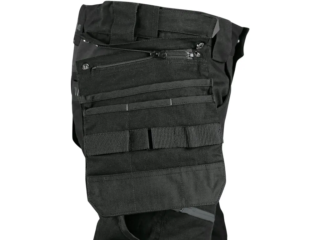 Pánské pracovní kalhoty moderního střihu slim-fit. Kombinace kvalitního směsového materiálu s elastanem a 4-way stretch materiálu v exponovaných místech umožňuje volný a pohodlný pohyb. Vybavení kalhot: flexibilní pas s možností upravení velikosti a poutky na opasek, na vnitřní straně pasu protiskluzový potisk, 2 přední kapsy, 2 odnímatelné kapsy na nářadí vyztuženy materiálem CORDURA®, stehenní zipové kapsy s možností ventilace, boční kapsa se zipovou kapsou, 2 zadní kapsy (jedna zipová) vyztuženy materiálem CORDURA®, kapsa na skládací metr s dalšími přihrádkami, ergonomicky tvarovaná kolena zesílena materiálem CORDURA® s možností vložení kolenních výztuh bočním vkládáním a ventilací, kapsa na ID kartu, spodní část nohavic vyztužena materiálem CORDURA®, reflexní doplňky. Kalhoty jsou vybaveny EASY-PROLONG systémem, který umožňuje snadné prodloužení střihu na vyšší postavu uvolněním švu na nohavicích. Doporučené použití: strojírenství, stavebnictví, lehký průmysl, automobilový průmysl, logistika, skladování, spedice, autoservisy, údržba, montáže, zemědělství, zahrada, hobby a volný čas.
