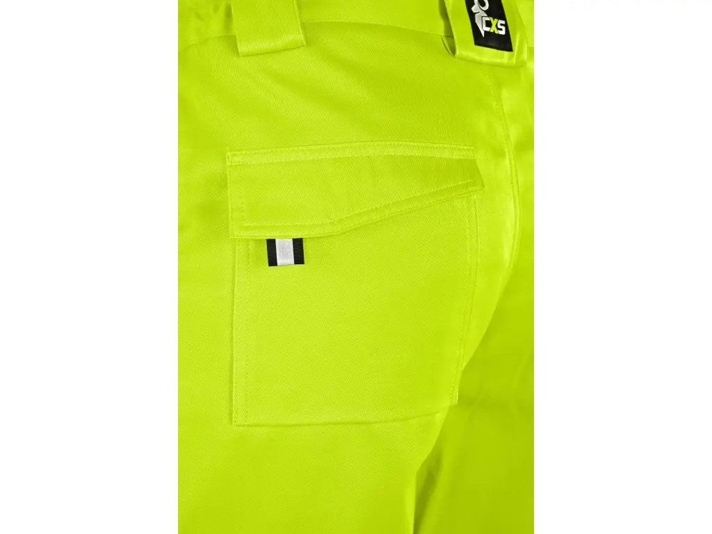 Pánské výstražné kalhoty s užším moderním střihem nohavic a segmentovanými reflexními pruhy o šíři 5 cm. Konstrukce 4-way stretch umožňuje roztahování materiálu ve všech čtyřech směrech a tím i snadný a volný pohyb. Vybavení kalhot: flexibilní pas s