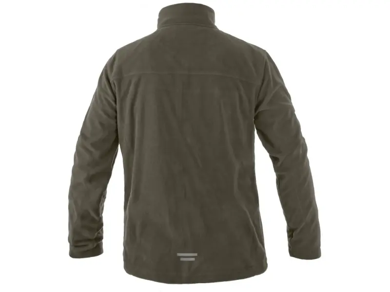 Pánska fleecová mikina s protižmolkujúcou úpravou, zapínanie na zips, sťahovanie v dolnom okraji, bočné vrecká na zips, reflexné doplnky.