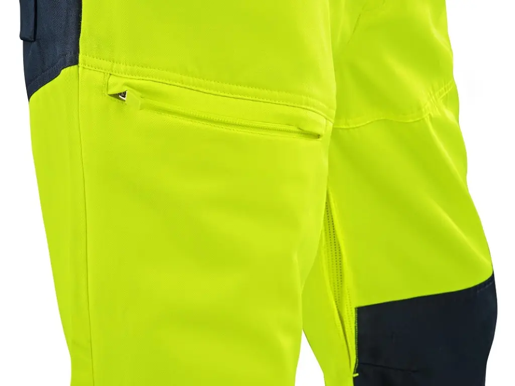 Pánske výstražné nohavice CXS HALIFAX sú určené na prácu v letnom období. Sú vybavené segmentovanými reflexnými pásikmi so šírkou 8 cm, ktoré zaisťujú vysokú viditeľnosť a zároveň zachovávajú pružnosť materiálu. Nohavice majú elastický pás s gumou v bokoch a s pútkami na opasok. Kryté zapínanie na zips, dve predné vrecká, dve zadné vrecká s chlopňou na suchý zips a pravé bočné vrecko na zips poskytujú dostatok praktického úložného priestoru. Zdvojené kolená zvyšujú odolnosť a umožňujú vloženie kolenných výstuh pre vyšší komfort pri práci v kľaku. Na vnútornej strane nohavíc a zadnej časti kolien je použitý sieťovaný materiál pre lepšiu mikrocirkuláciu vzduchu a odvod tepla. V kombinácii s blúzou CXS HALIFAX spĺňajú ochrannú kategóriu 3 podľa normy EN ISO 20471. Systém EASY-PROLONG umožňuje predĺženie dĺžky nohavíc pre vyššiu postavu, a to uvoľnením švu na nohaviciach. Odporúčané použitie: letný pracovný odev, stavebníctvo, cestárské práce, logistika, údržba, vodiči, letecká a lodná doprava, záchranári či technické služby.