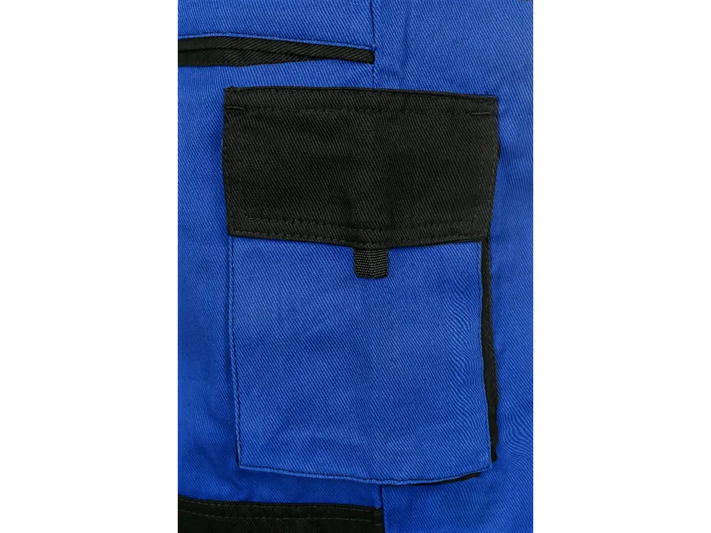 Pánské montérkové kalhoty - prodloužená varianta na výšku 194 cm. Pas s poutky na opasek, vzadu do gumy, přední kapsy, boční kapsa na svinovací / skládací metr, boční kapsa na mobil / peněženku, zdvojená kolena, zadní kapsa s klopou, reflexní doplňky. Doporučené použití: stavebnictví, lehký průmysl, logistika, skladová manipulace, autoservisy, údržba, montáže, zemědělství, zahrada, hobby.
