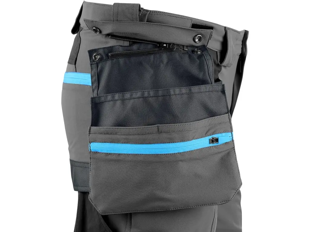 Pánské montérkové kalhoty s užším moderním střihem nohavic s kontrastními barevnými a reflexními doplňky. Konstrukce 4-way stretch umožňuje roztahování materiálu ve všech čtyřech směrech a tím i snadný a volný pohyb. Vysoké procento nylonu zaručuje schopnost rychlého schnutí. Vybavení kalhot: flexibilní pas s možností upravení velikosti a poutky na opasek, 2 přední kapsy, 2 odnímatelné kapsy na nářadí vyztuženy materiálem CORDURA®, zipová kapsa na stehně s odnímatelným pouzdrem na ID kartu, multifunkční boční kapsa, 2 zadní kapsy ve spodní části vyztuženy materiálem CORDURA®, zipová ventilace v zadní části stehen, kolena zesílena materiálem CORDURA® s možností vložení kolenních výztuh, spodní část nohavic vyztužena materiálem CORDURA®. Kalhoty jsou vybaveny EASY-PROLONG systémem, který umožňuje snadné prodloužení střihu na vyšší postavu uvolněním švu na nohavicích. Doporučené použití: strojírenství, stavebnictví, lehký průmysl, automobilový průmysl, logistika, skladování, spedice, autoservisy, údržba, montáže, zemědělství, zahrada, hobby a volný čas.