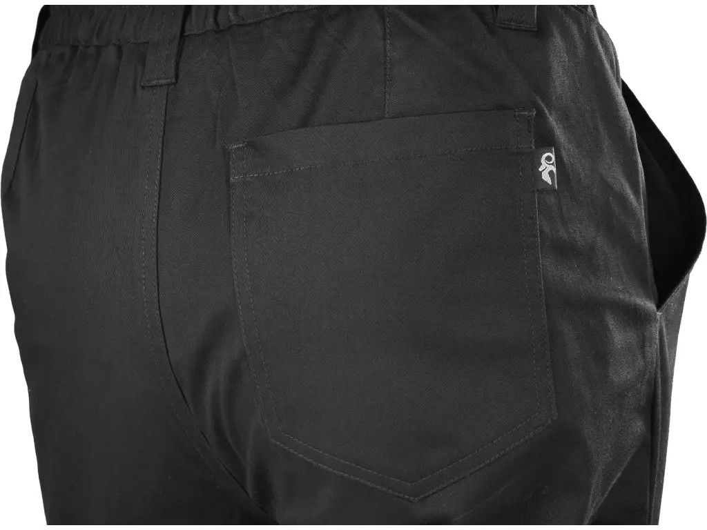 Pánske nohavice zo strečového materiálu v praktickom dizajne. Pevný pás je čiastočne pružný a doplnený pútkami na opasok pre pohodlné nosenie. Predné klinové vrecká sú navrhnuté tak, aby neprekážali pri pohybe ani pri práci. Malé bočné vrecko vpravo je ideálne na kuchársku pinzetu či ceruzky, zatiaľ čo zadné vrecko umožňuje praktické uloženie drobností. Nohavice sú vybavené systémom EASY-PROLONG, ktorý umožňuje jednoduché predĺženie strihu na vyššiu postavu uvoľnením kontrastného švu na nohaviciach. Odporúčané použitie: kuchári, čašníci, hotelové a kuchárske školy, bistrá, závodné a školské jedálne, strážne služby, pracovníci v divadlách, logistika, hobby.
