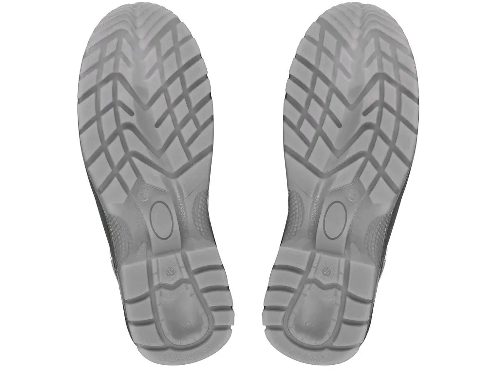 Pracovní polobotka, perforovaná, bez ocelové špice. Materiál: svršek z 1,4 - 1,6 mm kvalitní broušené kůže kombinovaný s prodyšnou tkaninou Cambridge, PU reflexní doplňky, prodyšná oděru odolná mesh podšívka, podešev: PU-TPU, protiskluzová, antistatická, olejivzdorná.