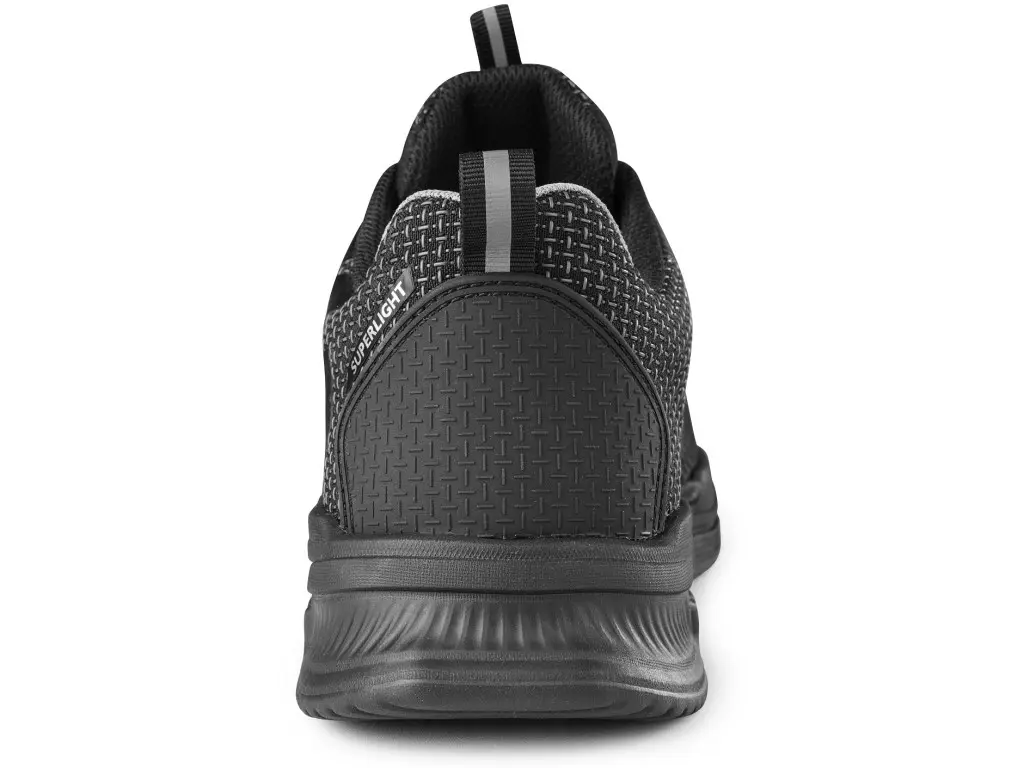 Bezpečnostná poltopánka, bez kovových súčastí, reflexné doplnky. Materiál: kompozitová špica a textilná antipenetračná planžeta, zvršokz 2 mm odolného materiálu PU-TEK (nylon potiahnutý rezistentnou TPU vrstvou), pätová aj okopová časť zo štruktúrovaného TPU materiálu. Textilná podšívka s ochranou vnútornej pätovej časti z mikrovlákna, pohodlná vyberateľná stielka z vysokohustotnej polyesterovej peny. Podošva: veľmi ľahká, protišmyková, antistatická, olejuodolná, jednohustotná podrážka z ľahčenej penovej gumy. Obuv je vhodná pre širokú škálu pracovných prevádzok, kde je potrebné chrániť nohy, napríklad vo výrobe, skladoch, dielňach, stavebníctve, údržbe, technických službách aj logistike.