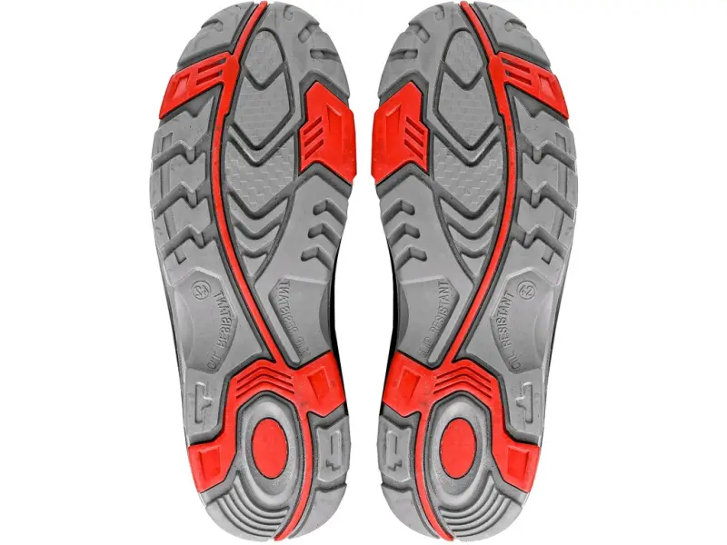 Kotníková bezpečnostní obuv zateplená vložkou Thinsulate (gramáž 200 g), s ocelovou špicí a planžetou, PVC reflexní pásek. Materiál: svršek z 1,6 - 1,8 mm hydrofobní hladké nubukové kůže kombinovaný s PU doplňky, prodyšná a oděruvzdorná textilní podšívka, podešev: PU-guma, antistatická, olejivzdorná, protiskluzová, odolná proti propichu a kontaktnímu teplu do 300 °C.