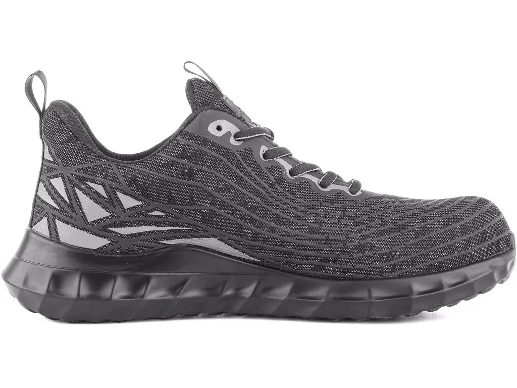 Bezpečnostní polobotka s textilním svrškem, kompozitní špicí a textilní antipenetrační stélkou, reflexní doplňky. Materiál: mesh svršek z odolného a prodyšného 2,0mm polyesteru pratelného do 30 °C, PU doplňky, prodyšná podšívka z netkané textilie, vnitřní zesílení paty mikrovláknem, podešev: PU, protiskluzová, olejivzdorná, antistatická, odolná proti propichu.
