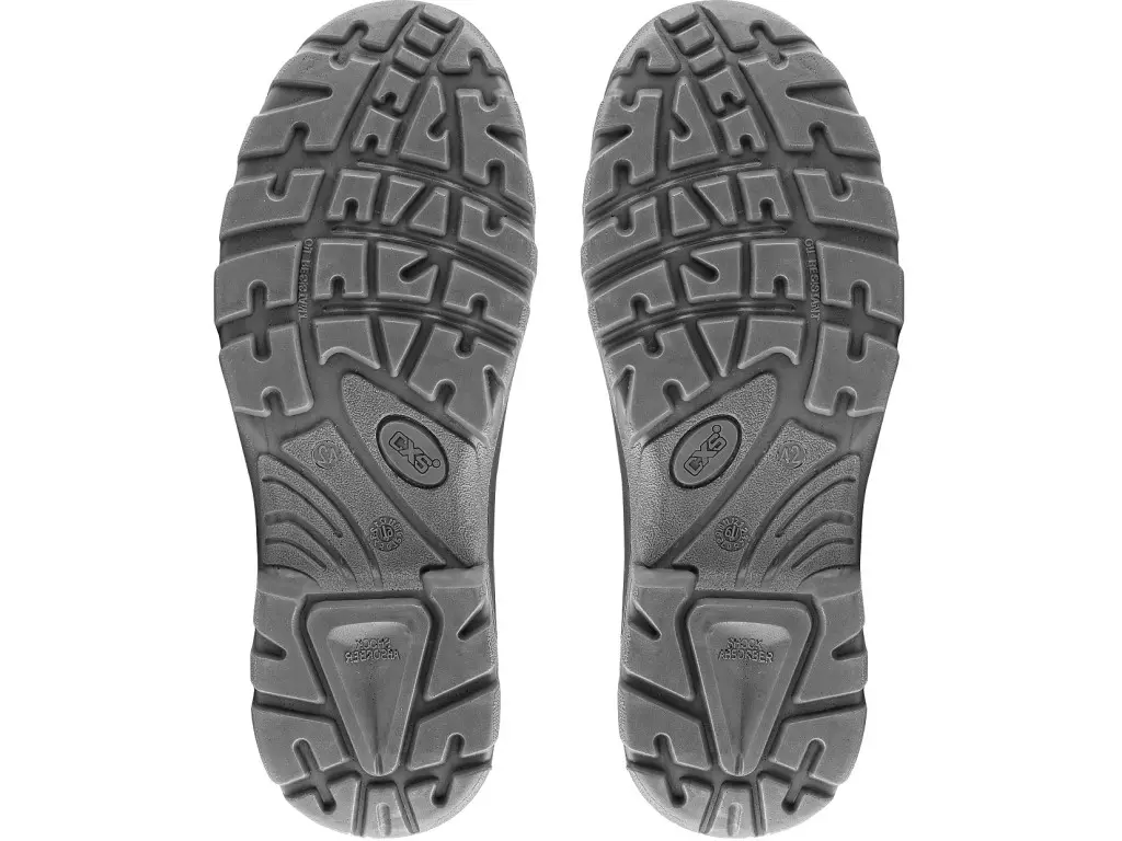 Bezpečnostní kožená polobotka s plastovou špicí a planžetou Dyna-Flex®, reflexní doplňky. Speciální utahovací systém umožňuje rychlé stažení i uvolnění obuvi. Materiál: svršek z 1,6 - 1,8 mm štípenkové nubukové kůže (z jednoho dílu), vnější PU ochrana okopu a TPU ochrana paty, podšívka z prodyšné oděru odolné textilie, podešev: PU-PU, olejivzdorná, antistatická, protiskluzová a odolná proti propichu.