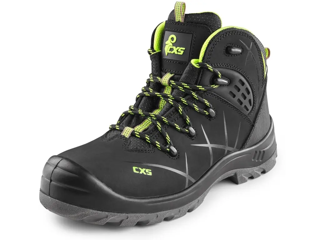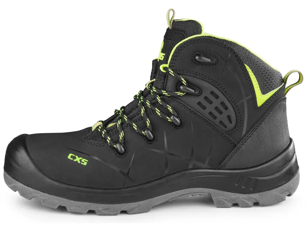 Bezpečnostná členková obuv, kožená, s plastovou špičkou a stielkou Dyna-Flex®, reflexné doplnky. Materiál: zvršok z 1,6 - 1,8 mm štiepanej nubukovej kože (jeden kus), vonkajšia ochrana špičky z PU a ochrana päty z TPU, bez kovových častí, podšívka z priedušnej tkaniny odolnej proti oderu, podrážka: PU-PU odolná proti olejom, antistatická, protišmyková, odolná proti prepichnutiu.