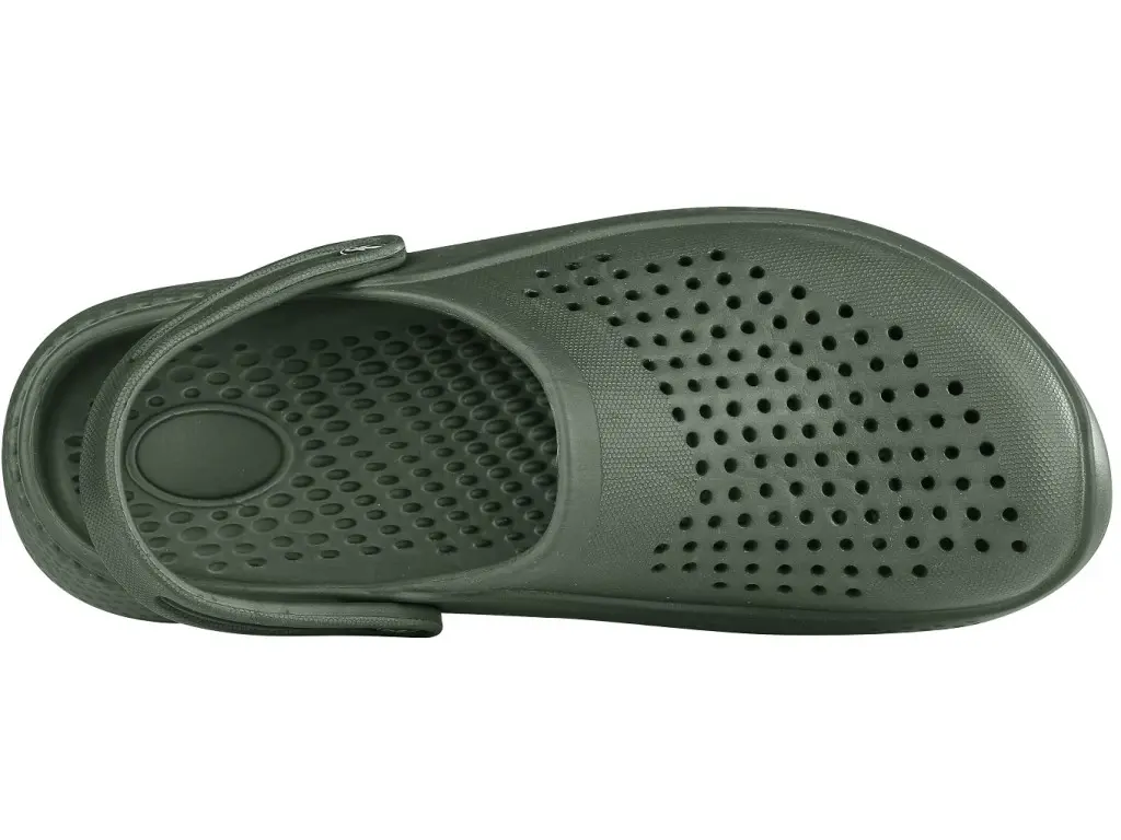 Pánsky voľnočasový nazúvák na každodenné nosenie. Ľahká a pohodlná obuv z EVA materiálu zaisťuje komfort počas celého dňa a jednoduchú údržbu. Perforácia vrchnej časti umožňuje optimálnu priedušnosť. Variabilný pätový pásik dodáva istotu a stabilitu pri chôdzi. Odolnosť proti pošmyknutiu na suchom aj mokrom povrchu.