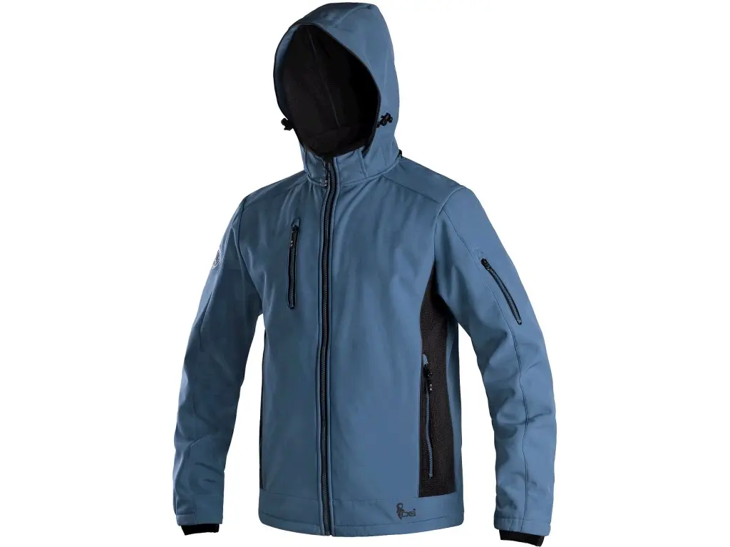 Pánská softshellová bunda, odolná proti vodě a větru, odepínací kapuce, pružné manžety v rukávech, stahování v dolním okraji, černé reflexní výpustky, fleecový límec i vnitřní strana bundy, TPU membrána, odolnost materiálu proti průniku vody (mimo oblast švů a mimo materiálu kolem kapes) 10 000 mm, paropropustnost 3 000 g/m2/24 hod. Na levém rukávu kapsička na zip, 2 spodní kapsy na zip, náprsní kapsa na zip.