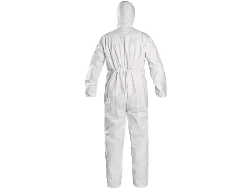 Jednorázový ochranný overal s kapucí. Ergonomické provedení slouží k ochraně uživatele. Elastické zakončení kolem zápěstí, kotníků a obličeje. Elastický pas. Zip s ochrannou klopou. Doporučené použití: malířské práce, zemědělství, čisté prostory, farmaceutický průmysl a zdravotnictví.