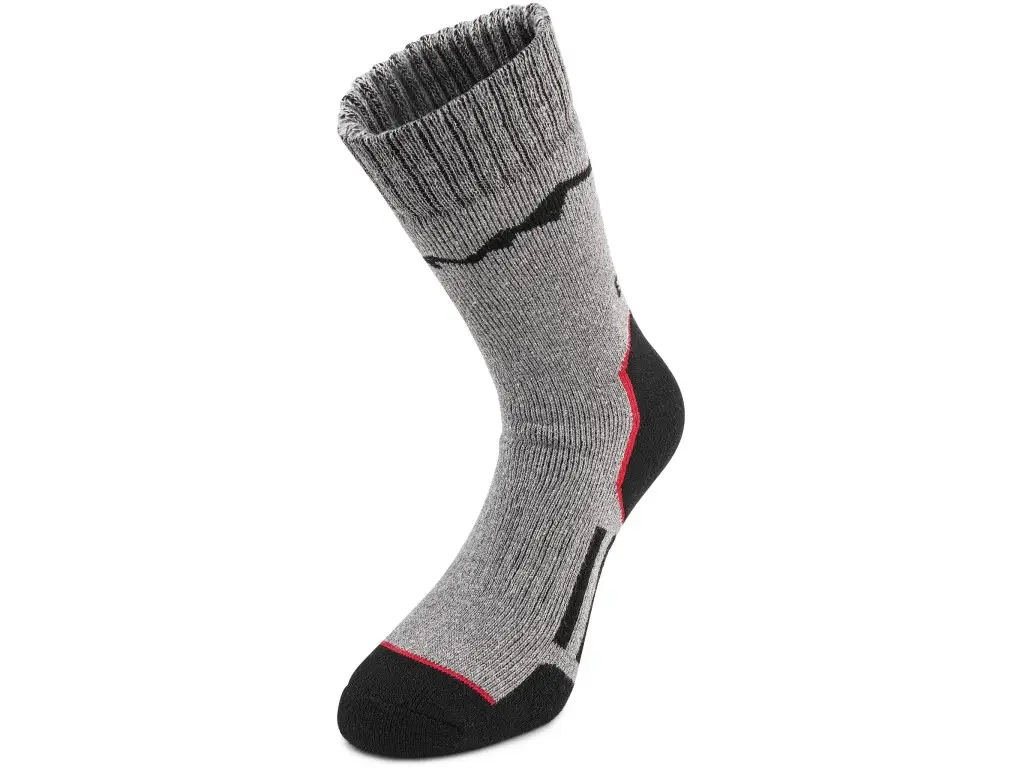 Ponožky CXS ThermoStep sú ideálne na náročné pracovné, športové aj voľnočasové aktivity v chladnom prostredí. Vysoký podiel bavlny zabezpečuje termoizolačné vlastnosti, vďaka ktorým zostávajú nohy v teple a suchu aj pri dlhodobej záťaži. Froté úplet na vnútornej strane ponožky poskytuje odpruženie po celej dĺžke chodidla a mäkký došľap. Elastické spracovanie s podporou klenby sa dokonale prispôsobí nohe a drží tvar bez skĺzavania. Voľný lem netlačí a nespôsobuje otlaky, čo zvyšuje celkový komfort pri nosení.