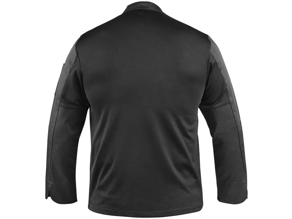 Kuchársky rondon v modernom dizajne s dlhým rukávom ponúka ideálnu kombináciu ochrany a komfortu pri práci v gastronómii. Zmesový materiál na prednom diele zabezpečuje odolnosť a upravený vzhľad, zadný diel z ľahkej sieťoviny podporuje cirkuláciu vzduchu a tým zvyšuje komfort pri práci v teple.Zapínanie na druky uľahčuje obliekanie a manipuláciu počas práce. Dlhé rukávy zakončené manžetou zaručujú pohodlné noseniea lepšie prispôsobenie pri práci s pokrmami. Praktické funkčné vrecko na ľavom rukáve poskytuje ideálne miesto na ceruzku. Odporúčané použitie: reštaurácie, hotely, catering, bistrá, školské a závodné jedálne, gastro prevádzky a kuchárske školy.