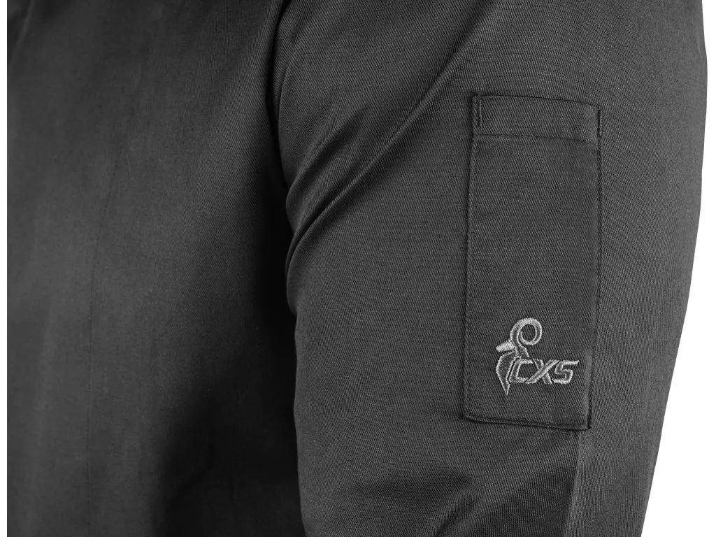 Kuchársky rondon v modernom dizajne s dlhým rukávom ponúka ideálnu kombináciu ochrany a komfortu pri práci v gastronómii. Zmesový materiál na prednom diele zabezpečuje odolnosť a upravený vzhľad, zadný diel z ľahkej sieťoviny podporuje cirkuláciu vzduchu a tým zvyšuje komfort pri práci v teple.Zapínanie na druky uľahčuje obliekanie a manipuláciu počas práce. Dlhé rukávy zakončené manžetou zaručujú pohodlné noseniea lepšie prispôsobenie pri práci s pokrmami. Praktické funkčné vrecko na ľavom rukáve poskytuje ideálne miesto na ceruzku. Odporúčané použitie: reštaurácie, hotely, catering, bistrá, školské a závodné jedálne, gastro prevádzky a kuchárske školy.