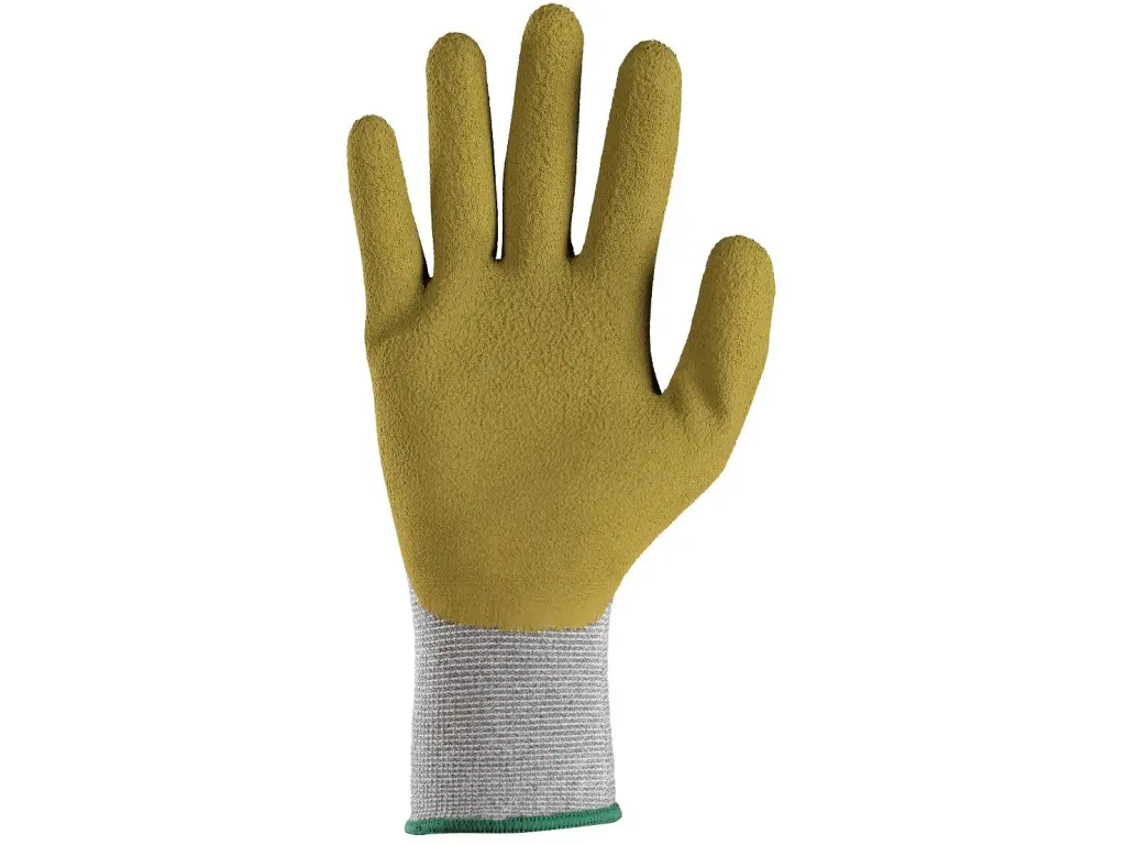 Pletené bezošvé rukavice vyrobené z recyklovaných materiálov, ktoré dávajú nový život plastovým fľašiam. Na výrobu jedného kusu rukavice bolo využitých 0,65 kusov PET fliaš. Rukavice sú v oblasti dlane a prstov potiahnuté penovým latexom pre pevnejší úchop. Poskytujú ochranu před kontaktným teplom do 100 °C. Pružná manžeta sa prispôsobí zápästiu. Všetky obaly produktu sú zvolené tak, aby mali čo najmenší dopad na životné prostredie. Odporúčané aplikácie: manipulácia s tovarom, práca s horúcimi predmetmi do 100 °C, pomocné práce v stavebníctve, logistika, ľahký priemysel, skladová manipulácia, poľnohospodárstvo, práca na záhrade, hobby.