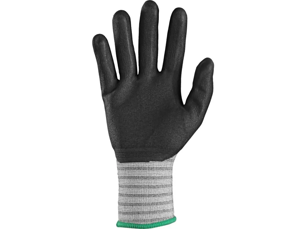 Pletené bezošvé rukavice vyrobené z recyklovaných materiálov, ktoré dávajú nový život plastovým fľašiam. Na výrobu jedného kusu rukavice bolo využitých 2,6 kusov PET fliaš. Rukavice sú v oblasti dlane a prstov potiahnuté penovým nitrilom pre pevnejší úchop. Pružná manžeta sa prispôsobí zápästiu. Funkcia Touchscreen (schopnosť ovládať dotykové obrazovky) závisí od výberu vhodnej veľkosti rukavíc. Rukavice sú prateľné, čím znižujú spotrebu a tým aj vznik odpadu. Neobsahujú silikón. Všetky obaly produktu sú zvolené tak, aby mali čo najmenší dopad na životné prostredie. Odporúčané aplikácie: elektronický priemysel / presná montáž, balenie, kontrola, čistá / automobilová montáž, manipulácia s malými dielmi.