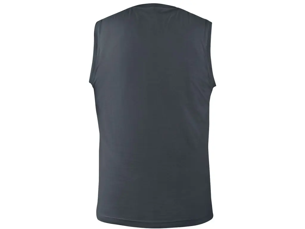 Pánské tričko bez rukávů, kulatý průkrčník. Zpevňující krční a ramenní páska, boční švy. Finální silikonová úprava materiálu, která zajišťuje vyšší měkkost, rozměrovou stálost a omezuje žmolkovatění. Použití v práci i pro volný čas. Vhodné pro potisk a výšivku.