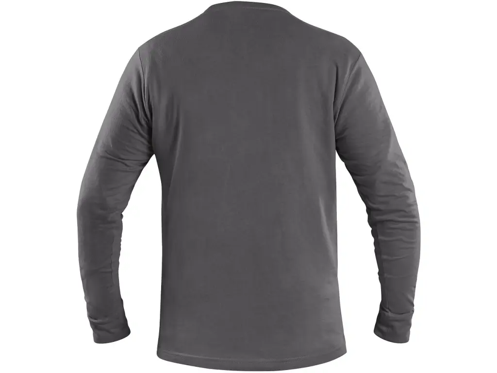 Pánské tričko s dlouhým rukávem, kulatým průkrčníkem a hlavicovým rukávem. Zpevňující krční a ramenní páska, trup je po stranách beze švů a rukávy zakončeny manžetou. Finální silikonová úprava materiálu, která zajišťuje vyšší měkkost, rozměrovou stálost a omezuje žmolkovatění. Použití v práci i pro volný čas. Vhodné pro potisk a výšivku.