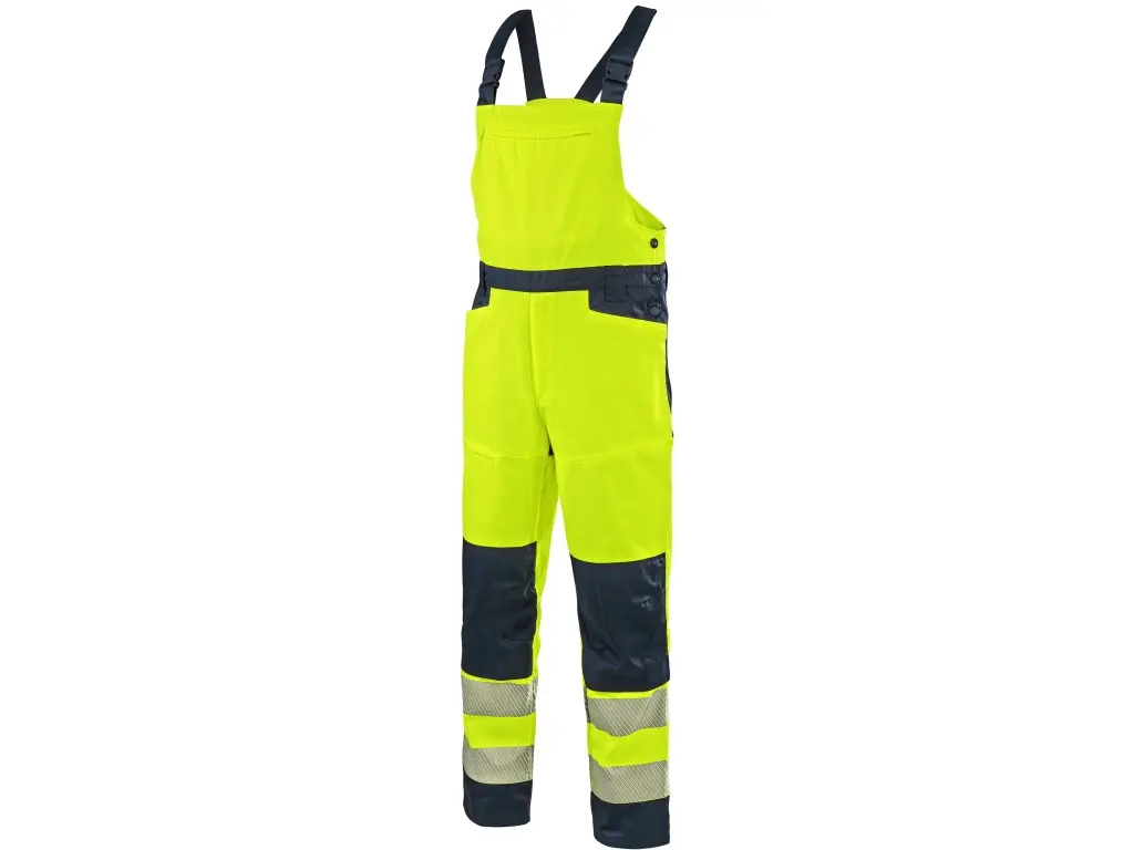 Pánske výstražné nohavice na traky CXS HALIFAX sú určené na prácu v letnom období. Sú vybavené segmentovanými reflexnými pásikmi so šírkou 8 cm, ktoré zaisťujú vysokú viditeľnosť a zároveň zachovávajú pružnosť materiálu. Nastaviteľné traky s gumou v zadnej časti umožňujú voľný pohyb a pohodlné nosenie. Nohavice majú pás s pútkami na opasok a so zapínaním na gombíky na bokoch, kryté zapínanie na zips a viacero praktických vreciek – náprsné vrecko na zips, dve predné vrecká, dve zadné vrecká s chlopňou na suchý zips a pravé bočné vrecko na zips. Zdvojené kolená zvyšujú odolnosť a umožňujú vloženie kolenných výstuh pre vyšší komfort pri práci v kľaku. Na vnútornej strane nohavíc a zadnej časti kolien je použitý sieťovaný materiál pre lepšiu mikrocirkuláciu vzduchu a odvod tepla. V kombinácii s blúzou CXS HALIFAX spĺňajú ochrannú kategóriu 3 podľa normy EN ISO 20471. Systém EASY-PROLONG umožňuje predĺženie dĺžky nohavíc pre vyššiu postavu, a to uvoľnením švu na nohaviciach. Odporúčané použitie: letný pracovný odev, stavebníctvo, cestárské práce, logistika, údržba, vodiči, letecká a lodná doprava, záchranári či technické služby.