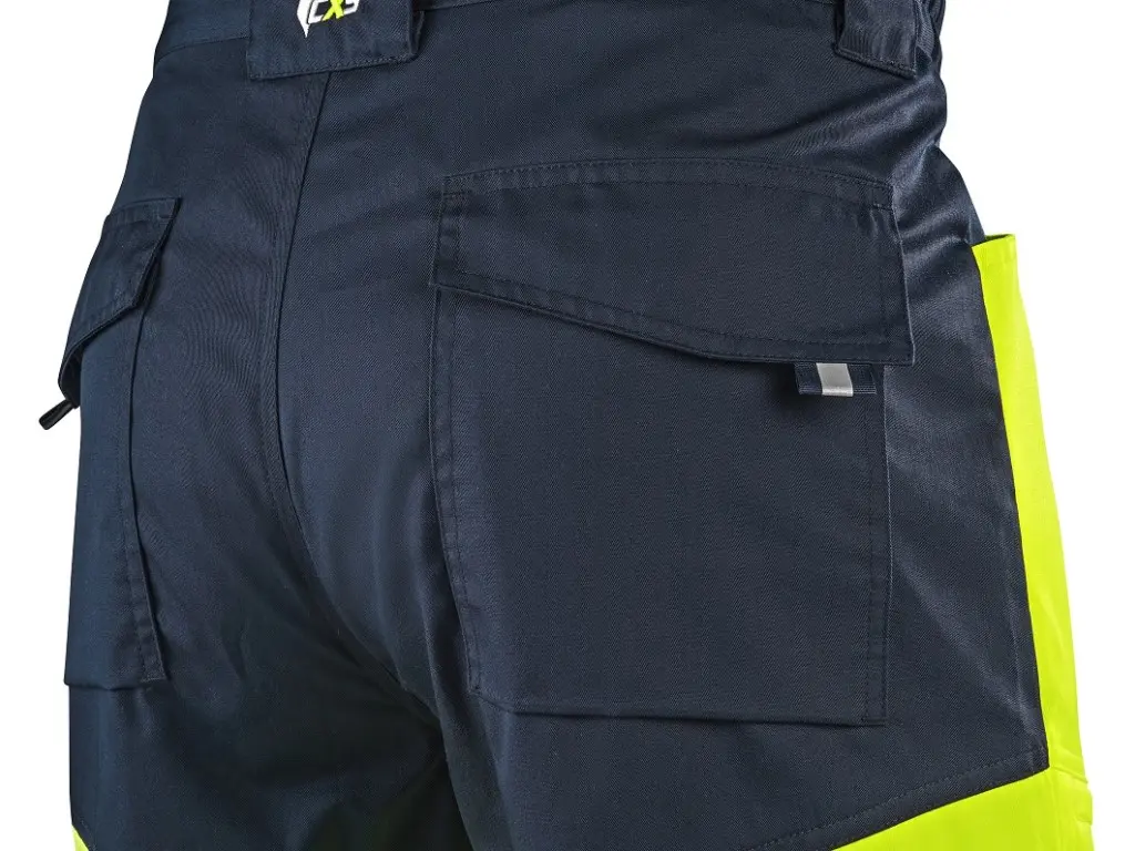 Pánske výstražné nohavice na traky CXS HALIFAX sú určené na prácu v letnom období. Sú vybavené segmentovanými reflexnými pásikmi so šírkou 8 cm, ktoré zaisťujú vysokú viditeľnosť a zároveň zachovávajú pružnosť materiálu. Nastaviteľné traky s gumou v zadnej časti umožňujú voľný pohyb a pohodlné nosenie. Nohavice majú pás s pútkami na opasok a so zapínaním na gombíky na bokoch, kryté zapínanie na zips a viacero praktických vreciek – náprsné vrecko na zips, dve predné vrecká, dve zadné vrecká s chlopňou na suchý zips a pravé bočné vrecko na zips. Zdvojené kolená zvyšujú odolnosť a umožňujú vloženie kolenných výstuh pre vyšší komfort pri práci v kľaku. Na vnútornej strane nohavíc a zadnej časti kolien je použitý sieťovaný materiál pre lepšiu mikrocirkuláciu vzduchu a odvod tepla. V kombinácii s blúzou CXS HALIFAX spĺňajú ochrannú kategóriu 3 podľa normy EN ISO 20471. Systém EASY-PROLONG umožňuje predĺženie dĺžky nohavíc pre vyššiu postavu, a to uvoľnením švu na nohaviciach. Odporúčané použitie: letný pracovný odev, stavebníctvo, cestárské práce, logistika, údržba, vodiči, letecká a lodná doprava, záchranári či technické služby.