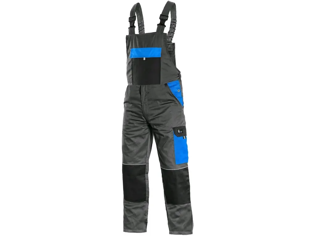 Pánské montérkové kalhoty s náprsenkou - zkrácená varianta na výšku 170-176 cm. Kalhoty z lehkého materiálu, náprsní kapsa s klopou, přední klínové kapsy, boční kapsa s klopou, kapsa na skládací/svinovací metr, zdvojená kolena, zadní jednoduchá kapsa, šle vzadu na gumu, reflexní doplňky. Díky odlehčené gramáži vhodné pro práci nejen v letním období, ale také celoročně ve vytápěných provozech. Doporučené použití: stavebnictví, strojírenství, lehký průmysl, automobilový průmysl, logistika, skladová manipulace, spedice, autoservisy, údržba, montáže, zemědělství, učiliště, zahrada, hobby.