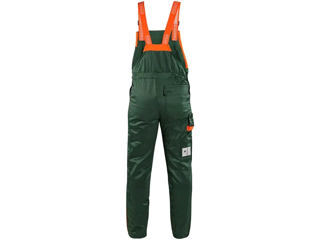 Pánské kalhoty proti pořezu, elastické šle, pas v zadní části do gumy, boční zapínání na knoflíky, protipořezová vložka v celé přední části kalhot, protiklíšťová úprava ve spodní části nohavic, 6 kapes. Doporučené použití: lesníci, práce s motorovou pilou, technické služby, dřevorubci, údržba zeleně.